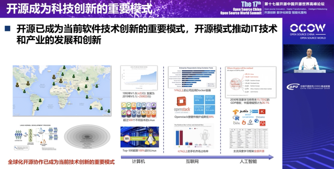 中国开源软件推进联盟名誉主席陆首群在发表开幕致词时表示,开源创新已经成为数字化开源在中国的发展与壮大已有 31 年,中国开源的发展共经历了以下 3 个阶段: