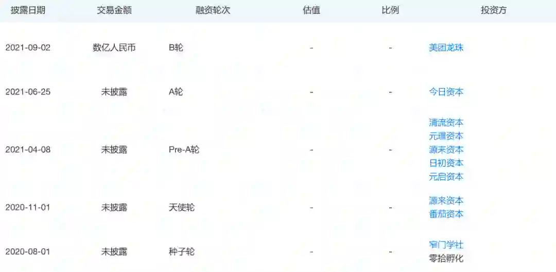 面食餐饮连锁品牌五爷拌面同样在7月份完成A+轮融资,投资方为高瓴创投和致远资本,此时距离五爷拌面上一轮融资不到一个月。6月份,五爷拌面完成A轮3亿元人民币的融资,号称当时餐饮界最大的一笔A轮融资,投资方是鼎晖投资和B资本。
