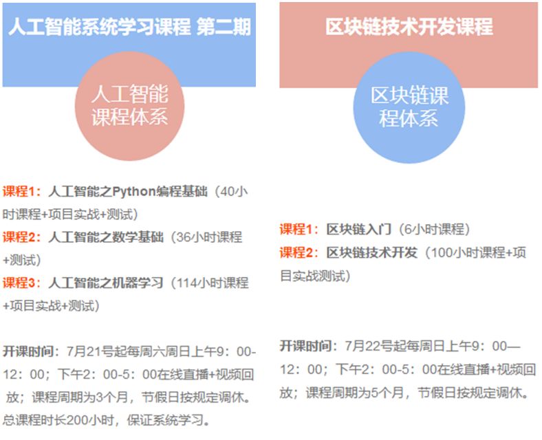 2、人工智能与区块链两个课程同时团报享受8折优惠:4800元。