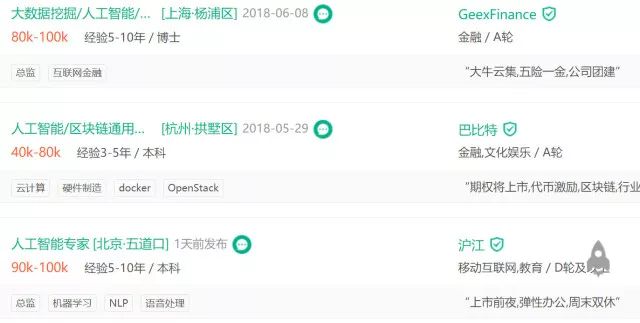 近日,在拉勾网发布的 2018年高薪清单中,腾讯、阿里、京东、小米等众多互联网公司发布了对 AI、高薪区块链人才的需求,这其中,薪资最高的开到了 100K(以下薪酬数据来自拉勾网)。