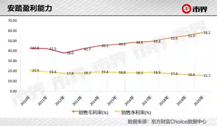 扩大直营店比例,短期来看会增加推广和分销开支,从而影响盈利能力。因此,近年来虽然安踏的毛利率一直在提升,但净利率却在下降。