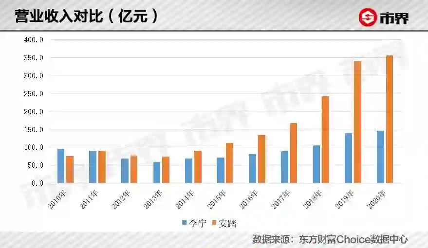 那时,虽然安踏在晋江运动服装行业已经脱颖而出,但国内运动服装行业的老大还是李宁。本世纪的前十年,李宁、耐克和阿迪达斯稳坐我国运动服装前三强宝座。直到2012年,李宁首次被安踏反超,维持了十年的行业格局被彻底打破。