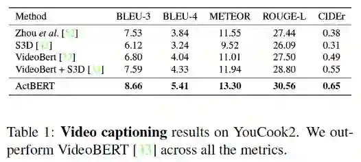 不需要复杂的联合视频文本建模,ActBERT 明显优于现有其他方法。表明 ActBERT 在大规模数据集上的强大学习能力。 结论 ActBERT 以一种自我监督的方式进行联合视频文本建模。该方法直接为全局和局部视觉信息建模,以进行细粒度的视觉和语言关系学习。ActBERT 将信息的三个来源作为输入,并使用了新颖的纠缠编码器进一步增强三个源之间的交互。五个视频文本基准测试的定量结果证明了 ActBERT 的有效性。未来可以通过设计更强大的视频和文本学习模块来提升 ActBERT,并将其应用到视频动作识别和检测中。 参考文献:Linchao Zhu, Yi Yang, ActBERT: Learning Global-Local Video-Text Representations, CVPR 2020.Antoine Miech et al., HowTo100M: Learning a Text-Video Embedding by Watching Hundred Million Narrated Video Clips, ICCV 2019.Chen Sun et al., VideoBERT: A Joint Model for Video and Language Representation Learning, ICCV 2019Linchao Zhu, Zhongwen Xu, Yi Yang, Bidirectional Multirate Reconstruction for Temporal Modeling in Videos, CVPR 2017. 本文为机器之心发布,转载请联系本公众号获得授权。 ✄------------------------------------------------加入机器之心(全职记者 / 实习生):hr@jiqizhixin.com投稿或寻求报道:content@jiqizhixin.com广告 & 商务合作:bd@jiqizhixin.com