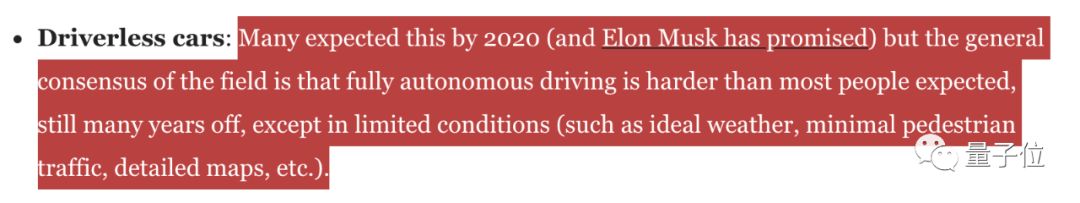 他批评了马斯克预言自动驾驶汽车在2020年实现不切实际。