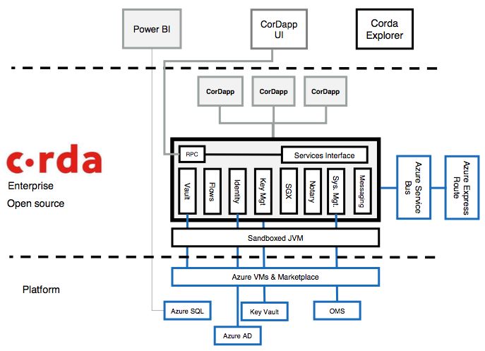 2017年低,Corda和微软Azure达成合作,将Corda平台搬到Azure云上,推广更易使用的“分布式账本技术即服务”。