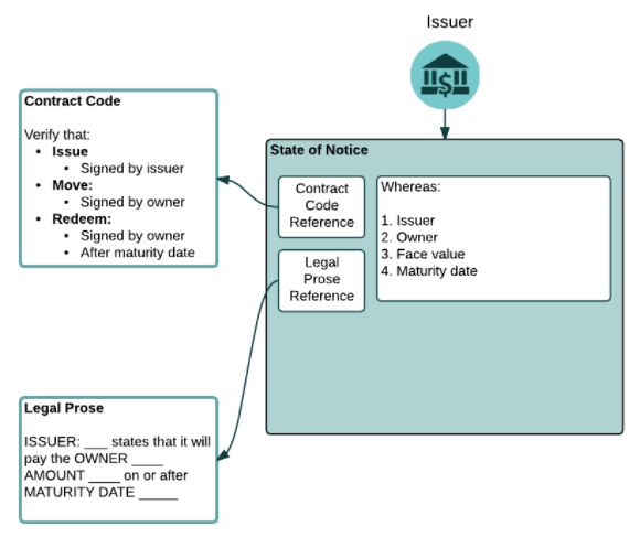 其中@LegalProseReference这个annotation是最有价值的特性,它关联了现实世界中真实的具有法律意义的合约!这样Contract接口的设计就满足了: