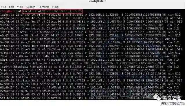 命令:macof -i eth1 -d 192.168.1.1