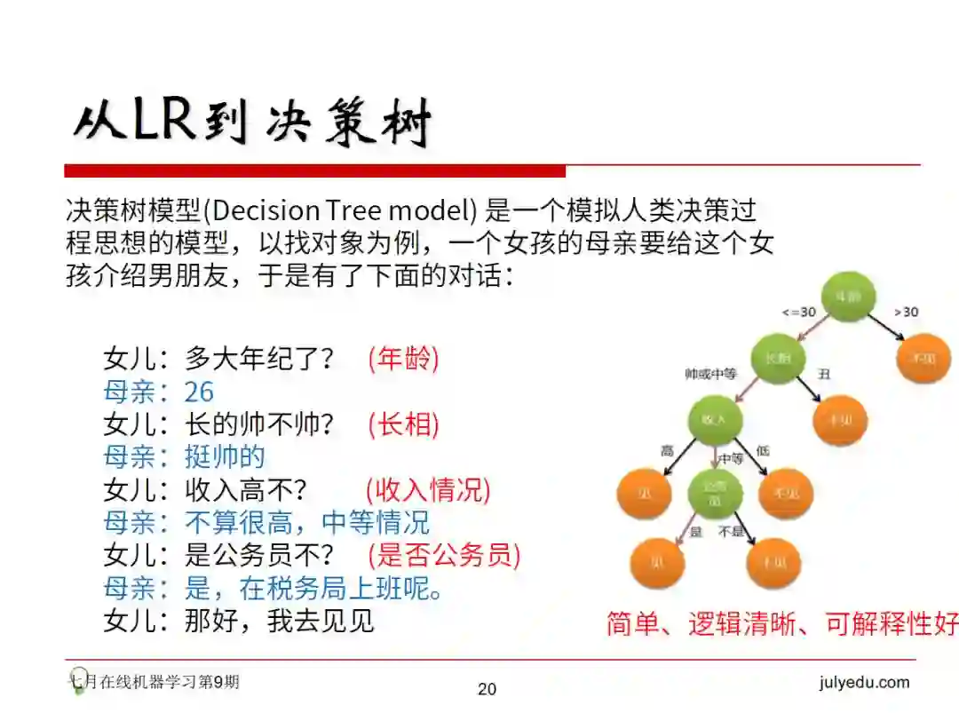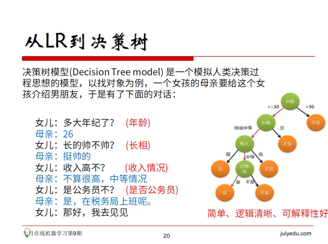 以决策树作为起点的原因很简单,因为它非常符合我们人类处理问题的方法,而且逻辑清晰,可解释性好。