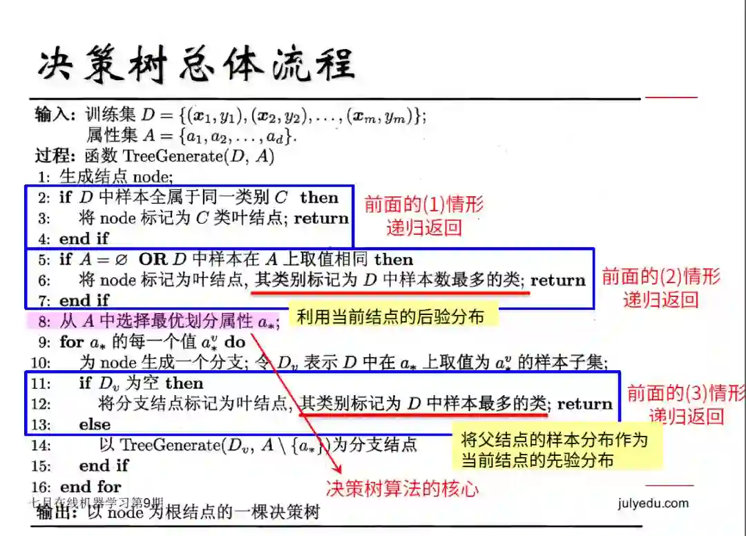 决策树是一种树形结构,其中每个内部节点表示一个属性上的测试,每个分支代表一个测试输出,每个叶节点代表一种类别。