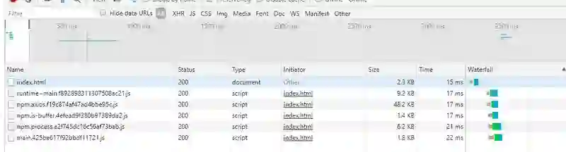 安装 http-server 或使用 vscode 的插件 Live Server 将代码放入一个本地服务器中,打开浏览器的调试窗口进入到 Network 面板: