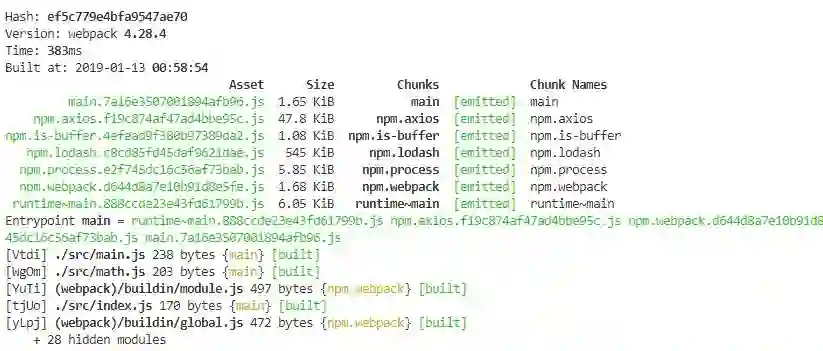 虽然说这样将第三方模块单独打包出去能够减小入口文件的大小,但这样仍然是个不小的文件;这个小的测试项目中我们使用到了 axios 和 lodash 这两个第三方模块,因此我们希望的应该是将这两个模块单独分离出来两个文件,而不是全部放到一个 vendors 中去,那么我们继续配置 webpack.config.js: