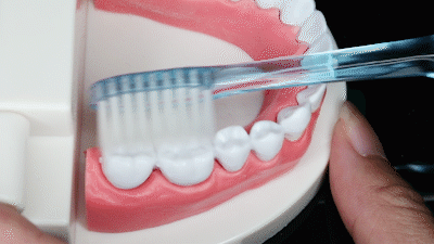 刷毛能最大程度的平行牙齿,更深层的清洁牙龈内的污渍。