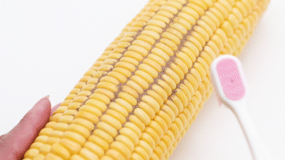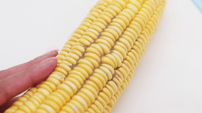 用均匀的力度,分别刷两个玉米。