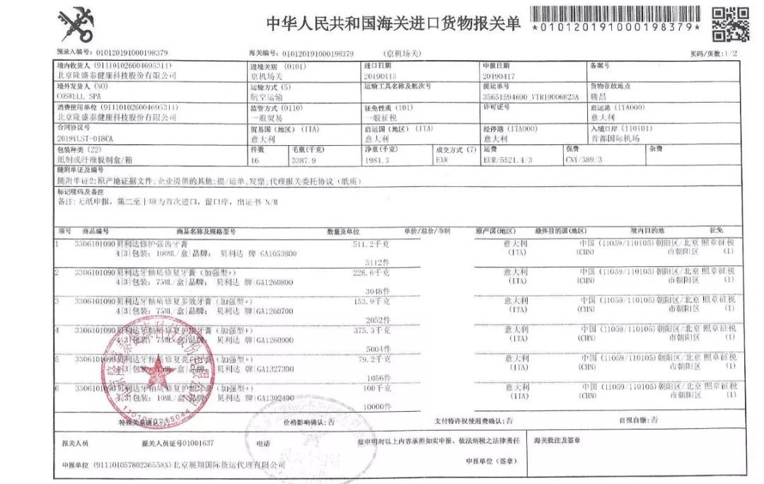 而且这个牙刷更是纯进口的哦,绝对能保证产品的质量,报关证必须放上来给你看。
