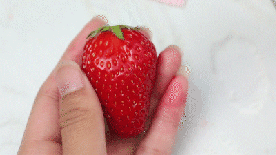 我拿了两个草莓做测试,如果能做到草莓都不刷破,那刷更坚硬的牙齿,一定没有问题了。