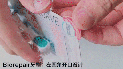 这个牙刷的设计细节也特别让人满意,包装左上角的开口设计,打开包装更方便快速。