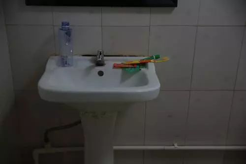 我将贝利达牙刷和普通牙刷,一起浸泡在水中,一起甩水。