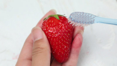 用同样的力量,贝利达牙刷刷的草莓就没什么损伤。