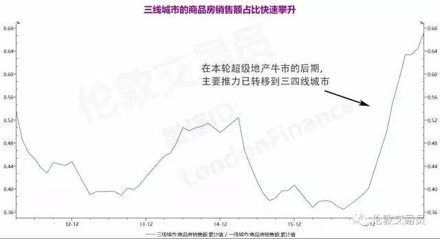 在总体房贷增量与住房销售额之比持续增加的情况下,如果房产销售的主要推力来自于三线城市,那也暗示着三线城市的居民贷款杠杆也是往上走的。