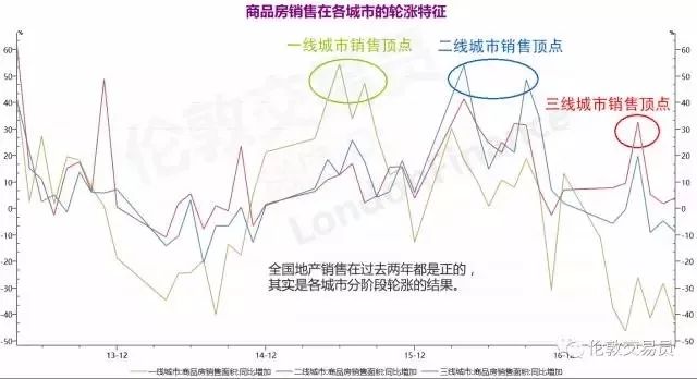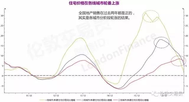 全国地产销售在过去两年都是正的,其实是各城市分阶段轮涨的结果。