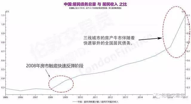 上图是居民债务总量和居民年收入的比值,类似于我们分析上市企业时的债务/收入比。