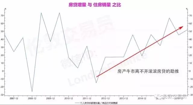 除了真实购买力的增加,本轮地产牛市的最强劲推力来自于大幅攀升的居民房贷。
