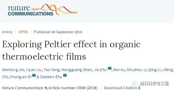 热电材料可以实现温差和电能之间的直接转换,是重要的能源材料之一。作为新型热电材料体系,有机热电材料在柔性、低成本供电器件和自供电传感器方面具有广阔的应用前景(Natl. Sci. Rev. 2016, 3, 269. Nat. Commun. 2015, 6, 8356)。近年来,有机热电材料研究开始起步并得到广泛关注,关键性能指标不断攀升,成为有机电子学中重要的前沿研究方向之一。尽管如此,有机热电材料与器件的基本效应研究严重缺乏,限制了领域的快速发展。
