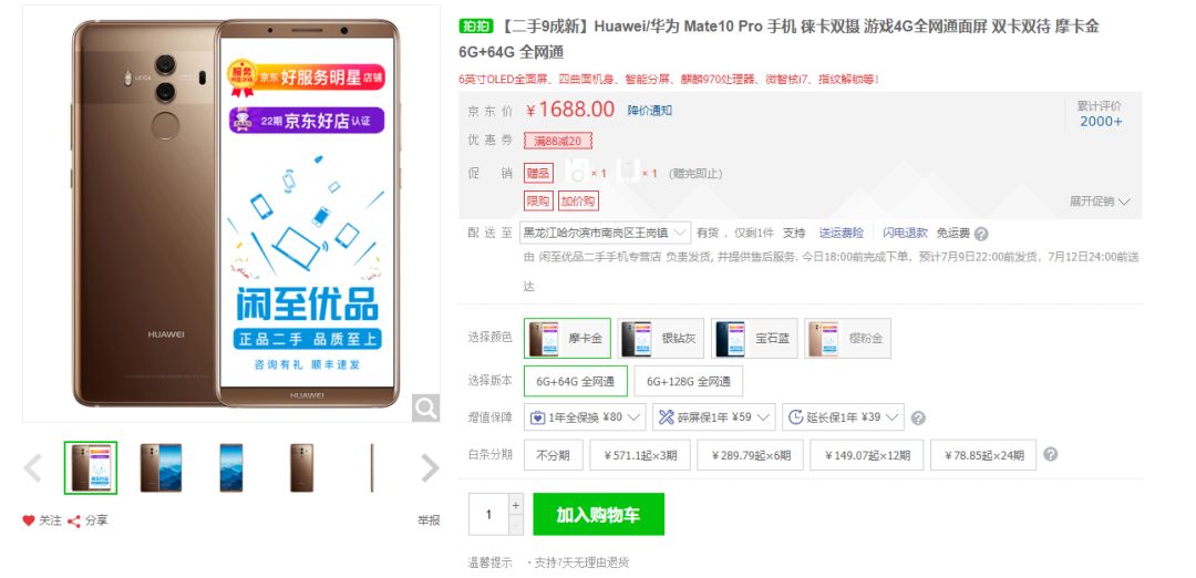 如今Mate10 Pro的价格是多少元呢?目前在官方店铺已经找不到这款机型,但是第三方渠道给出的价格是2000元左右,在二手平台,9成新的Mate10 Pro的价格为1700元左右。