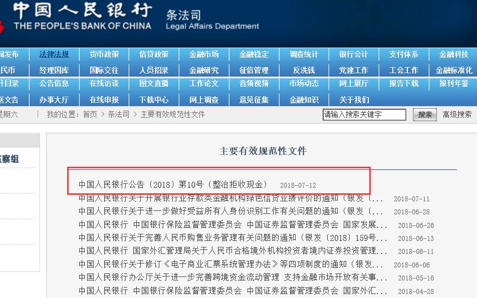 去年7月13日,央行发布公告(中国人民银行公告〔2018〕第10号)指出,中华人民共和国的法定货币是人民币,包括纸币和硬币(以下统称现金)。