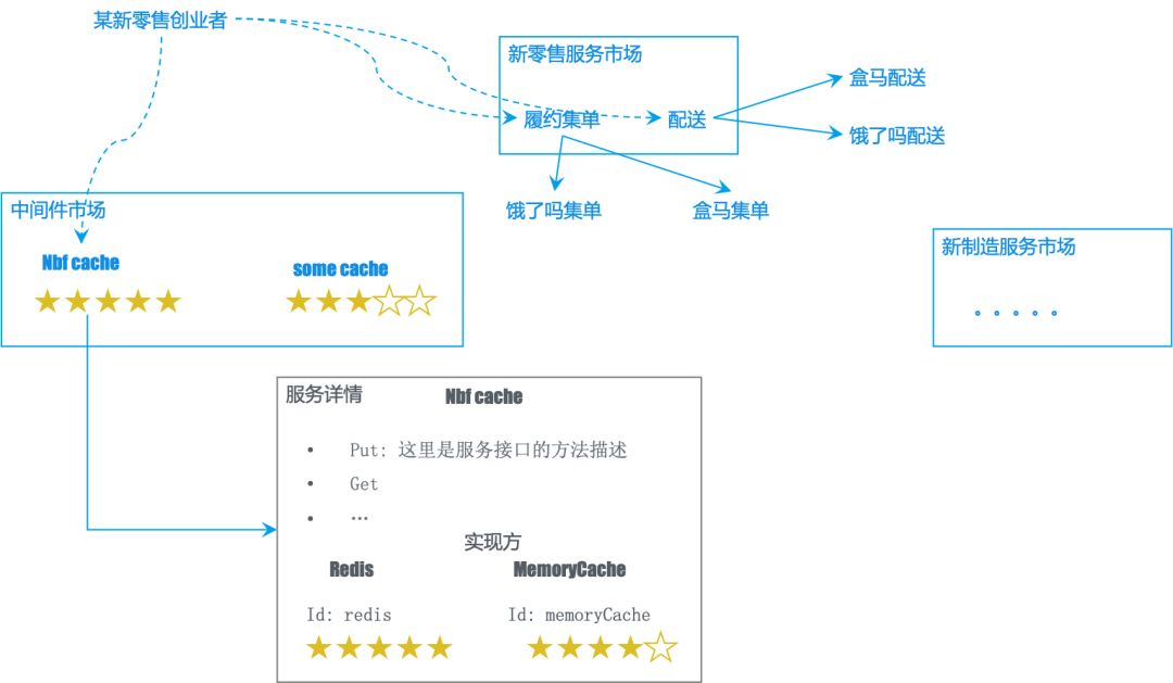 服务发现主要职责怎么找到需要调用的服务,怎么生成调用服务的URI,拿HSF的服务寻址策略来对比,整个机制就简单了 HSF的寻址URI: Proxy://IP:port/service/version/method 对于Broker服务发现 IP和port对应的容器本身的网络信息,这些可以通过APPName或者Armory分组以及未来serverless后的GroupId来获取 serviceName,version这些数据就是第三层Broker数据层提供的spi和bundle元数据信息 有了这些基本信息以后,我们就可以生成NBF服务发现的URI了。