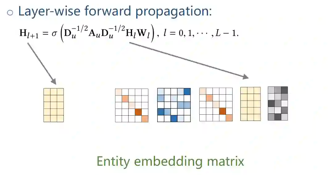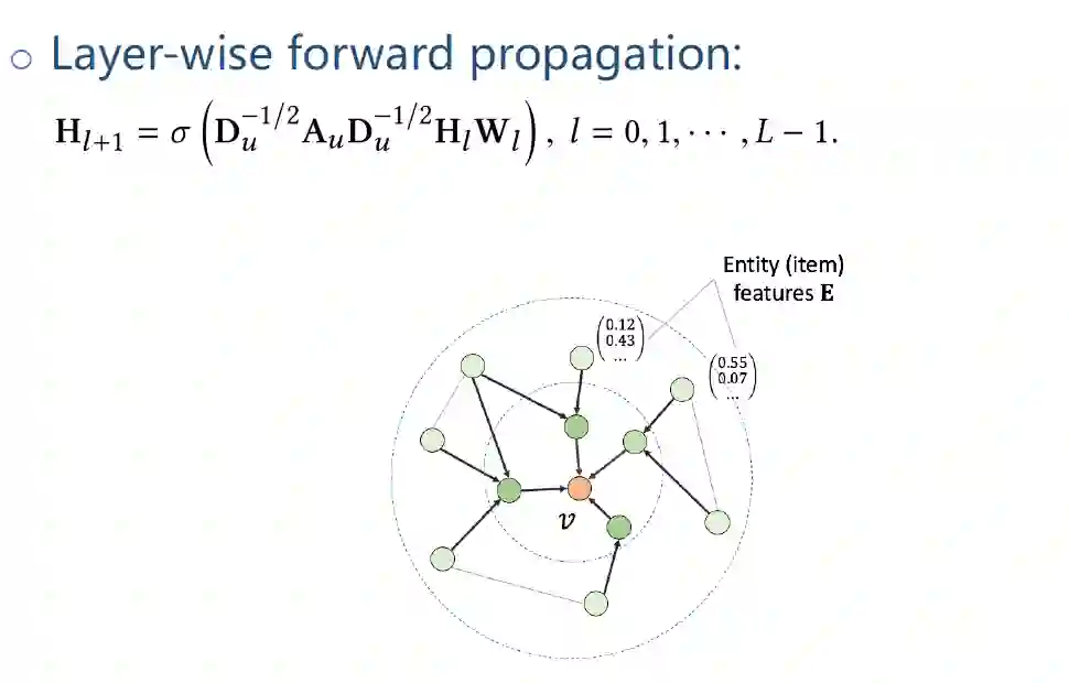 把KG中实体信息通过GNN做一个融合,如上图公式是一个标准的GNN的公式,