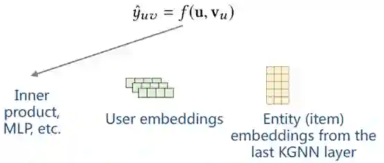 通过f函数得到预测值,f函数可以取内积,或MLP等。到这是第1篇论文的KGCN模型。