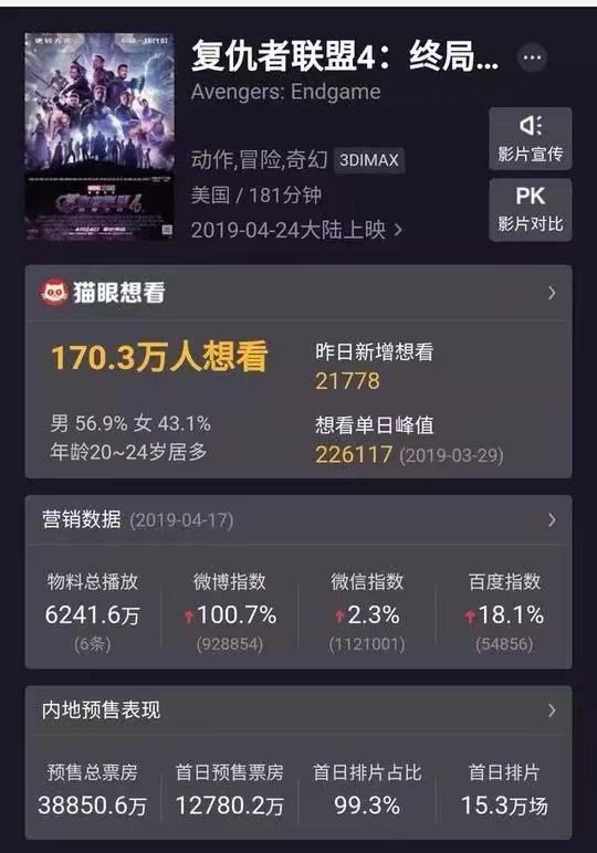 继《复联3》票房火爆之后,今年又将迎来一场盛宴。《复联4》还未上映,就已经在全球成为热议话题,不仅预告片成为了全球点击量最高,而且北美票务平台在开启预售之后被疯狂抢座,甚至一度导致了系统网络瘫痪。