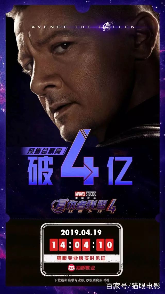 最新消息显示,截止目前《复联4》零点场票房已经4亿。这是中国影史上首次有影片零点场票房破4亿。