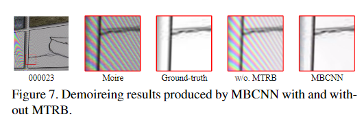 最近的很多工作试图通过多尺度设计来消除不同频段的摩尔纹。DMCNN 提出使用具有多分辨率分支的多尺度CNN处理摩尔纹图案,并对不同尺度的输出求和以获得最终输出。MDDM 通过引入基于动态特征编码器的自适应实例规范化改进了DMCNN。DCNN提出了一种从粗到细的结构来去除两尺度的摩尔条纹。对粗尺度结果进行上采样,并将其与细尺度输入连接起来,以进行进一步的残差学习。MopNet 使用多尺度特征聚合子模块来处理复杂频率,并使用另外两个子模块来处理边沿和预定义的波纹类型。本文的模型还采用了针对三个不同比例的分支的多比例设计。在不同尺度之间,本文的模型采用渐进式上采样策略以平滑地提高分辨率。