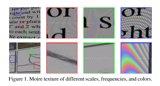 与去噪、去马赛克、颜色恒定、锐化等其他图像修复问题不同,人们对图像去伪存真(demireing)的关注较少,它是指从被摩尔纹污染的图像中恢复基本的干净图像。这个问题在很大程度上仍然是一个未解决的问题,由于摩尔纹图案在频率、形状、颜色等方面的巨大变化。
