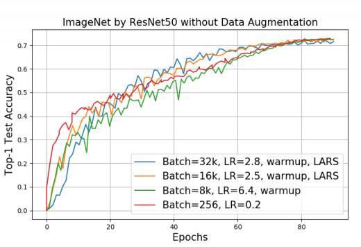 图 4:通过使用 LARS,我们能把 ResNet-50 的批量大小扩展到 32K