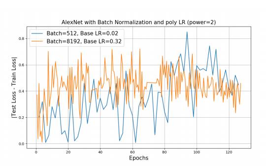 为在 AlexNet 上实现大批量训练,我们尝试了许多不同技术(如,数据清洗、数据缩放(data scaling)、多步 LR、最小 LR 调参)。我们观察到只有批归一化(BN)能够提升准确度。