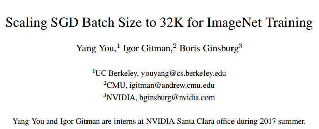 3.2.3 用于大批量训练的层级对应的适应率缩放(LARS)