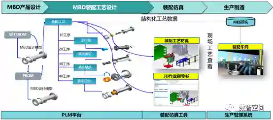 在西门子的装配工艺解决方案中,装配工艺与仿真建立于企业PLM平台之上,充分利用设计MBD模型、资源、工程MBD模型,由流水分工、MBOM创建、结构化工艺设计、工艺仿真与优化、可视化工艺输出、工艺统计报表部分组成,并实现各环节的数据管理,与PLM系统共用制造资源库。系统与产品设计、工装设计、维护维修、试验测试等系统实现数据共享和协同,与ERP、MES实现系统集成。同时把装配工艺仿真放在PLM环境中统一考虑,提供在PLM环境下的装配工艺仿真能力。可以与数字化装配工艺规划结合起来,为改进产品装配制造过程提供了一个全新的方法和手段,来研究产品的可装配性分析、装配工艺的优化,装配质量的控制,装配工装的验证,以得到保证产品质量,缩短产品生产周期的目的。