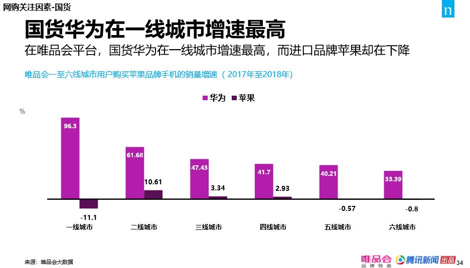 品牌特卖把更多的品牌带给三四五线城市用户,帮助低线级城市提升品牌认知,并与一二线城市趋同。在近四年的唯品会128大促中,低线级城市用户数和销量增长率相比一二线城市的更高。