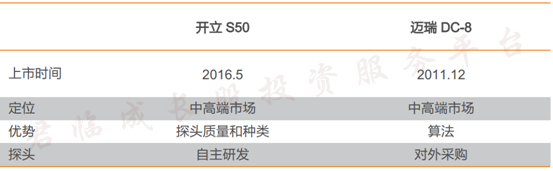 (开立的中高端设备S50,和国内竞争对手迈瑞的同级产品DC-8比较,可以看出探头是开立最拿得出手的重要组件。)