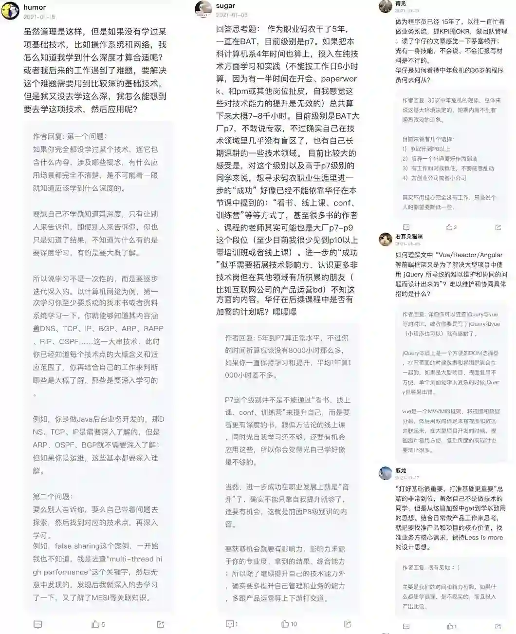课程上线不久,已累积了不少好评,华仔不仅耐心回答了每一个问题,而且评论质量也非常高,看留言区互动讨论都能学到不少,截了一些供你参考:
