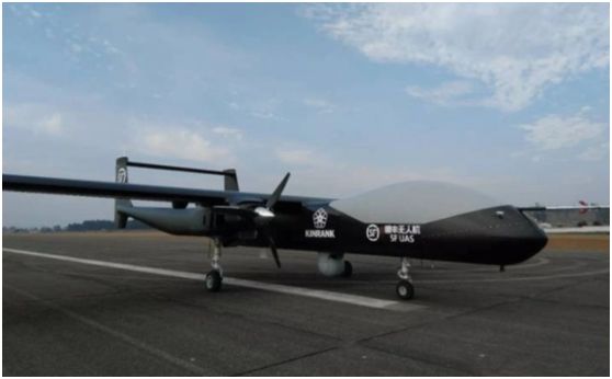 2017年12月26日,顺丰在云南一座机场展开无人机试飞投递,为华为的深山基地投递维修零件,该无人机可承载1.2吨货物,翼展20米,机身10米。注意是超过一吨的货物。