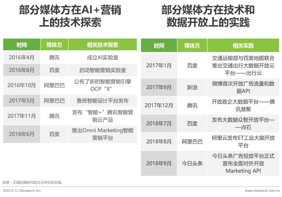 媒体方同广告主一样,拥有一手的用户网络行为数据,但由于其依托广告为主的商业化布局,决定了数据本身就是媒体方的核心资产,因此在过去通常媒体方对数据的挖掘和利用会比广告主更加深刻。而在AI+营销阶段,头部的矩阵型媒体方更加倾向于自主研发AI技术支持营销体系,一方面,媒体方本身就直接为广告主提供营销服务,拥有自己的技术平台将会进一步优化自己的服务能力,提高自身在媒体中的竞争力,因此媒体方在技术投入上的潜在收益会大过前期成本;另一方面,随着未来AI+营销的应用深化,媒体方要加大未来商业空间的想象力,那向第三方服务商等角色进行业务扩张,也是其发展战略之一。同时,媒体方在发展技术和数据的同时,也在不断尝试和探索技术和数据的合理开放共享,以打破信息孤岛,实现更大程度的大数据利用与挖掘,为行业乃至社会的发展提供支持。