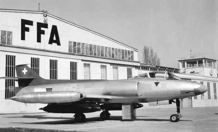 P-16 瑞士喷气式飞机。1953 年到 1955 年间,Z4 为 Flug- und Fahrzeugwerke Altenrhein SG 在康斯坦茨湖上开发的这款飞机执行过颤振和俯冲计算。