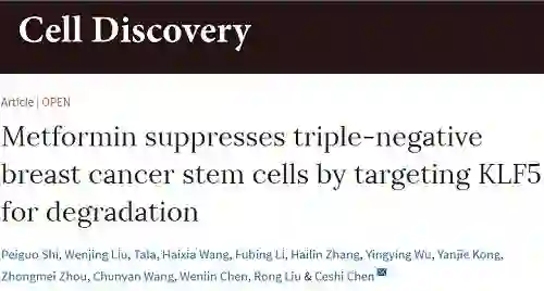 同时,4月18日,发表在Nature子刊Cell Discovery上的一项研究中,来自中国的一个科学家小组发现,二甲双胍可以降低ALDH阳性乳腺癌干细胞群以及抑制微球体形成能力。进一步通过肿瘤干细胞检测金标准,有限稀释体内成瘤实验发现,二甲双胍可以显著降低三阴性乳腺癌细胞在动物体内肿瘤形成和肿瘤增殖能力。这些结果说明,二甲双胍可以抑制三阴性乳腺癌干细胞。