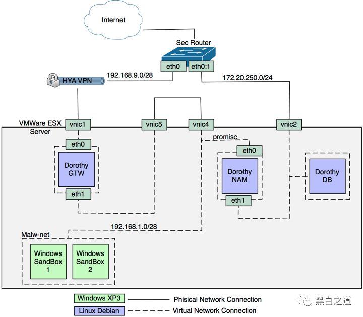 警告:当前版本的Dorothy使用了VMWareESX5来作为它的虚拟沙箱模块(VSM)。因此,Dorothy不支持免费版的ESXi,因为它使用的是vSphere 5 API。但是,整个框架是可以进行自定义设置的,配置之后就可以使用其他的虚拟化引擎了。Dorothy2是一个高度模块化的框架,用户可以对其进行自定义设置和修改。