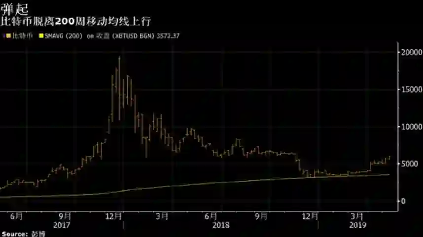 “从长期技术面来看,比特币仍处于新的上升周期,”Fundstrat Global Advisors LLC技术策略师Rob Sluymer在5月8日的一份报告中表示。在上周告诉投资者要买入后,他认为这项数字资产会继续反弹,脱离200周移动均线支撑。