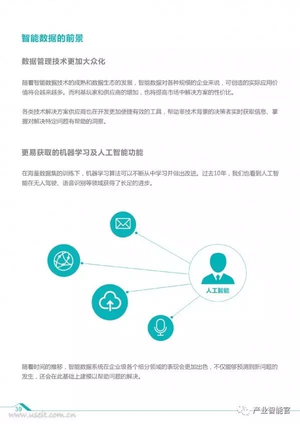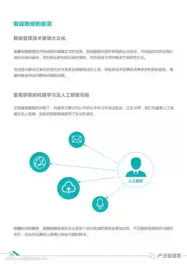 最后,白皮书也对智能数据的前景进行了展望。随着智能数据技术的成熟和数据生态的发展,智能数据对各种规模的企业来说,可创造的实际应用价值将会越来越多。而利基玩家和供应商的增加,也将提高市场中解决方案的性价比。